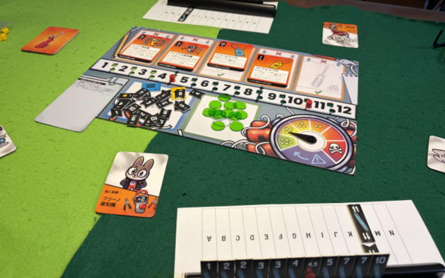 上のアイテムカードは人数に応じた数が並べられ、その数字が1ペアでたらいつでも1度だけ使えるようになる。