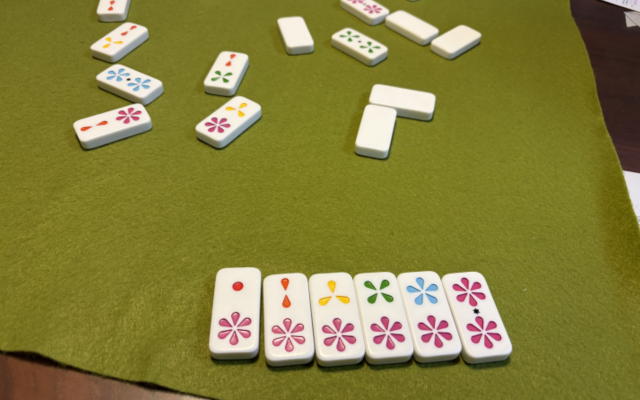 ※麻雀と同じく1と6は続かない。上下が同じ牌はドラ牌として+1点となる。