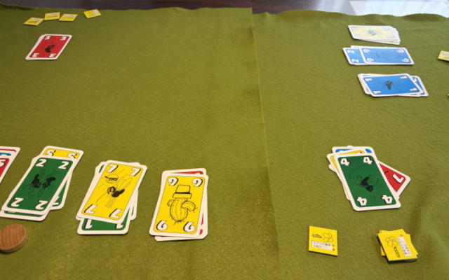 今回の切り札は黄色と9である。数字の9が一番強い。